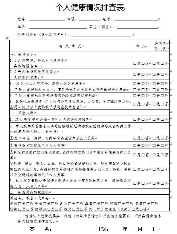 附件:個人健康情況排查表