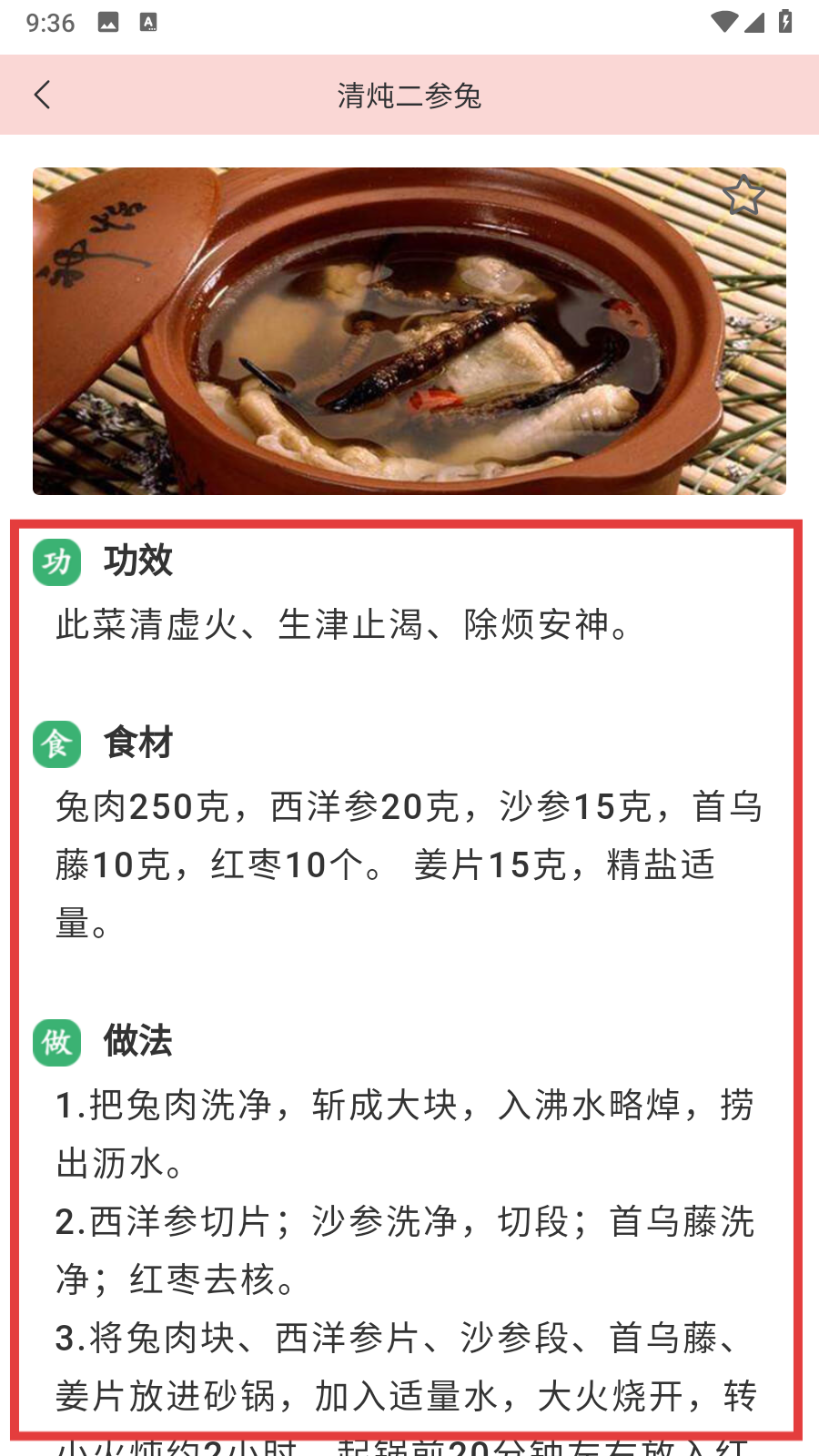 4、進入具體食譜詳情頁,查看其功效、食材和做法步驟,按照指導(dǎo)制作養(yǎng)生膳食。