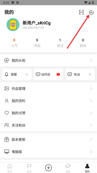 2、在個(gè)人中心頁(yè)面,點(diǎn)擊右上角【設(shè)置】圖標(biāo),進(jìn)入設(shè)置界面。