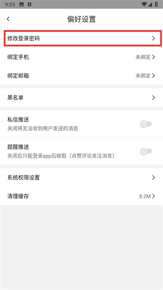 3、在設(shè)置界面的【偏好設(shè)置】中,點(diǎn)擊【修改登錄密碼】選項(xiàng),進(jìn)入密碼修改頁(yè)面。